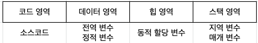 2) 프로그램이 실행될 때 메모리(데이터 영역)에 할당되어 프로그램이 종료되면 메모리에서 해제